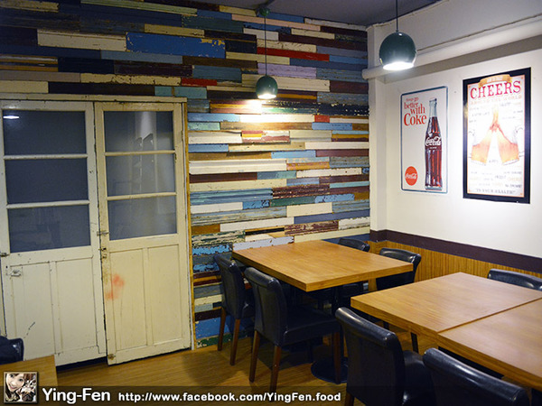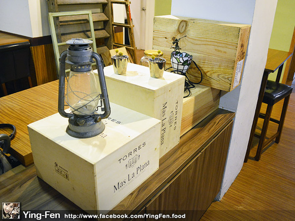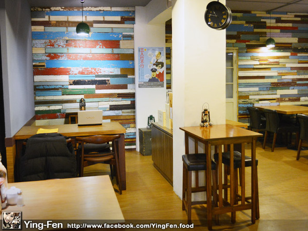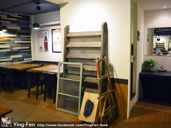 走到店家的最裡面,可以看到整面都是拼接木板,木板上面好多顏色,聽老闆說這些都是回收的木板,回收再利用,當裝潢真的很不錯看;這些木板拼接,讓我有熟悉的感覺,因為剛好之前我有幫國外客人,用這些木板拼接設計一些產品,國外客人都非常喜歡,他們喜歡自然的木頭有破皮效果,有的人喜歡越舊越好,每次我幫公司的客人彩繪樣品的時候,都要把新的東西上面畫一些仿古效果,因為國外都喜歡復古舊舊的東西。