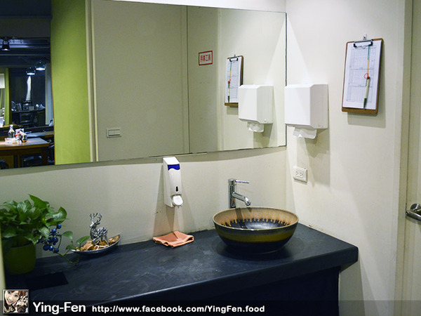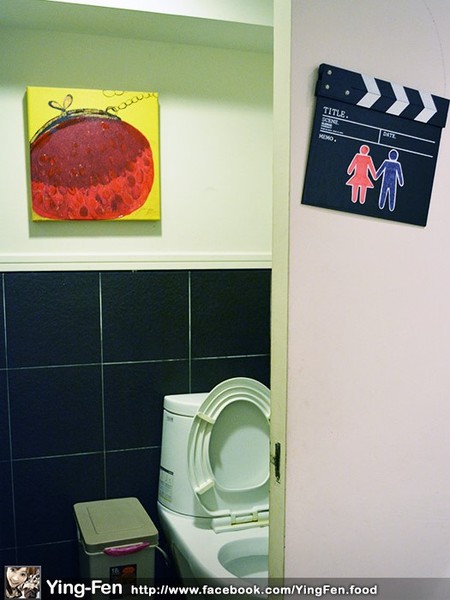 往洗手間的走道有擺放一些舊舊的木板當裝飾