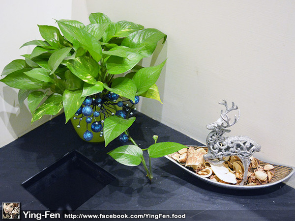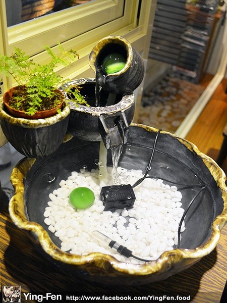 進去店家裡面可以聽到音樂和流水聲音,因為店家左手邊有放流水器,流水器蠻可愛的,有可愛的小盆栽。