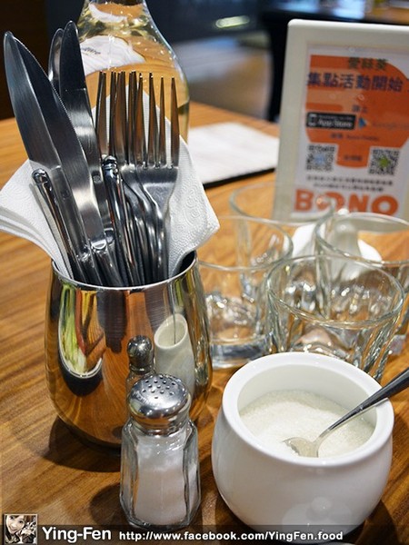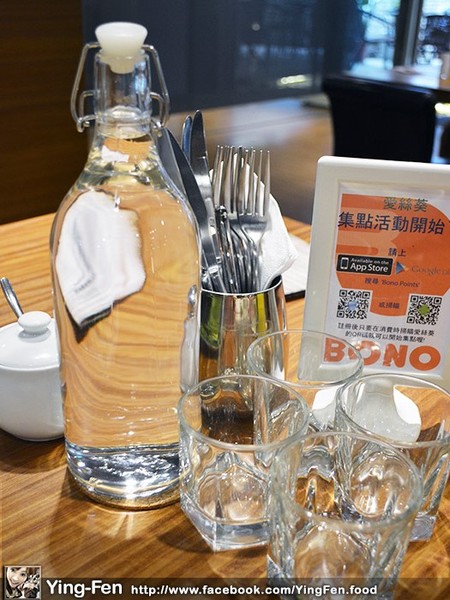 看完店家環境,接下來要用餐囉!桌上有簡單的水,水是用玻璃瓶裝。