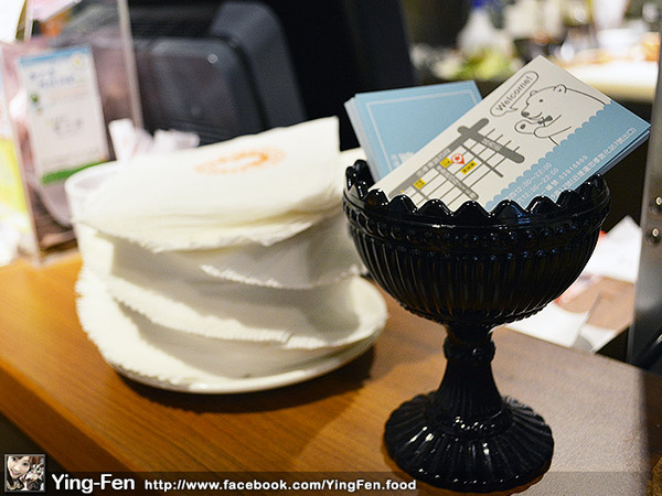 還有擺放面紙和名片,上面都有印熊的圖案,店家的LOGO標誌,仔細看面紙擺放好有層次,有螺旋效果非常好看。