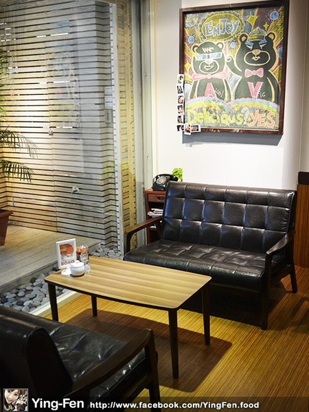 室內用餐環境,店家裡面也是選用深咖啡色木板材質裝潢,加上復古的黑色沙發,感覺很有質感。