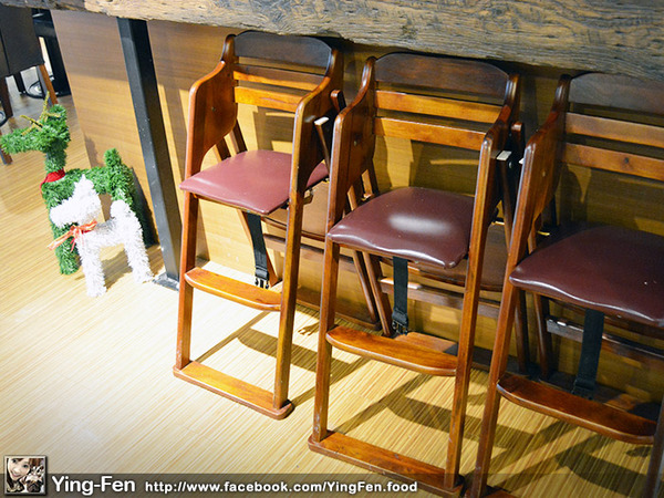 底下還有放置可愛的嬰兒坐椅,坐椅的顏色和我們大人的椅子顏色差不多,木頭顏色很相近。