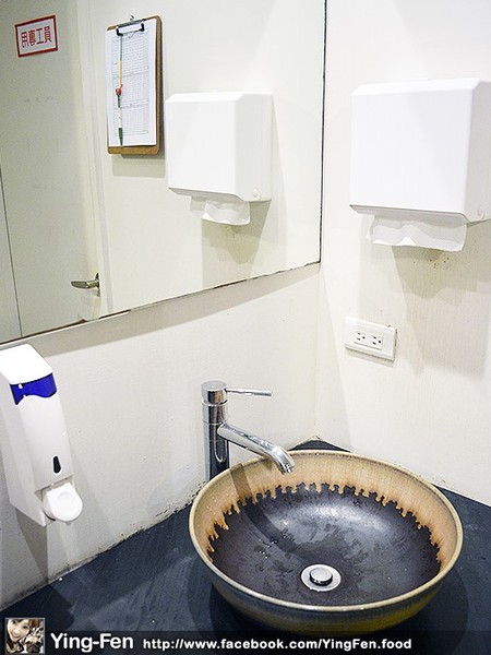 洗手台是用陶瓷材質,上面有釉的顏色,有流釉效果,顏色非常簡單好看。