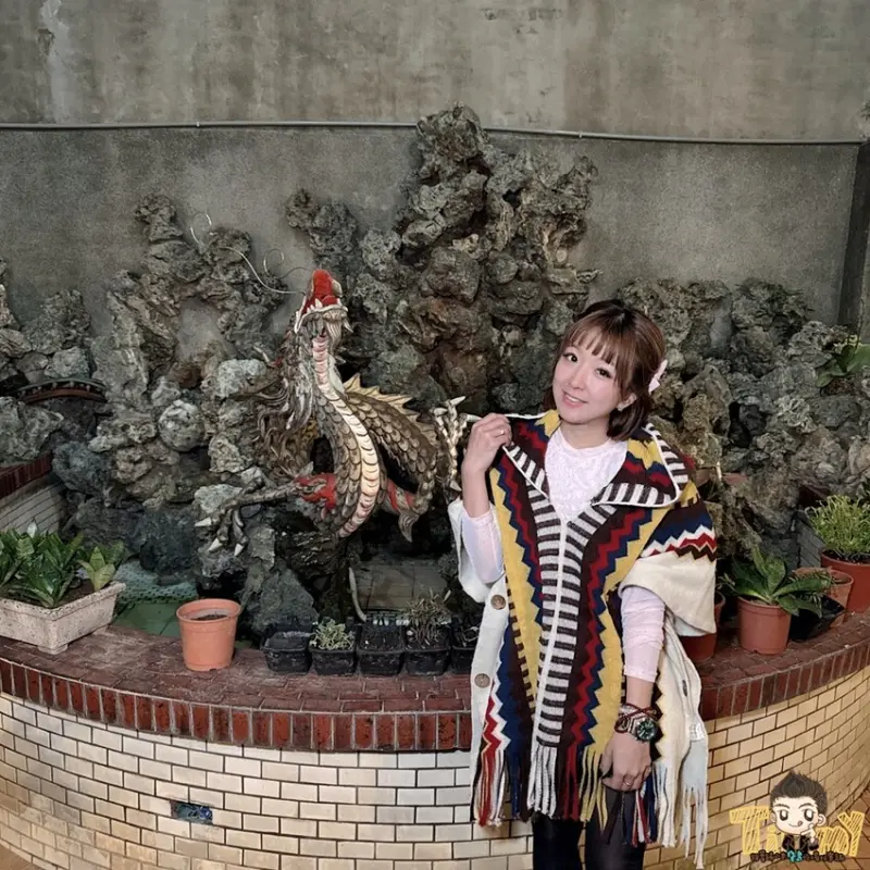 後方水池還有假山造景和巨龍裝飾~