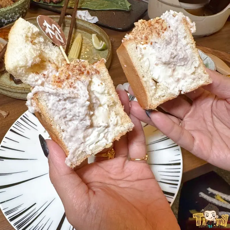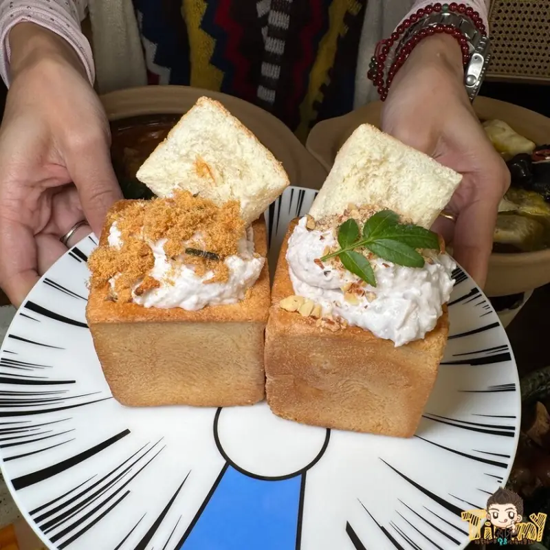 芋泥綿密香甜,加上滑嫩、奶香濃郁的奶凍、肉鬆和脆皮吐司,有多層次的美味享受