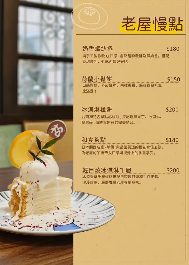從老屋的環境到主食、飲品和甜點都很有特色,喜歡老屋的朋友不能錯過