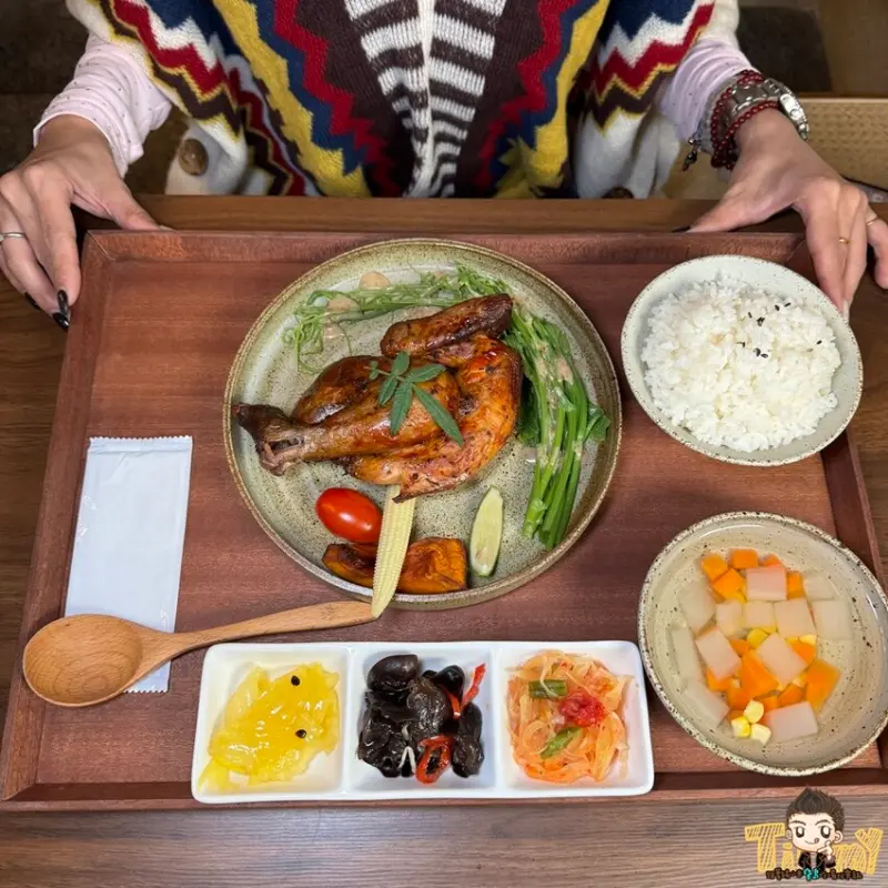 一樓複合式餐廳餐點選擇性多,而且很美味! 像嬤嬤酸菜魚、主廚香料烤春雞、甜點和飲品都有特色