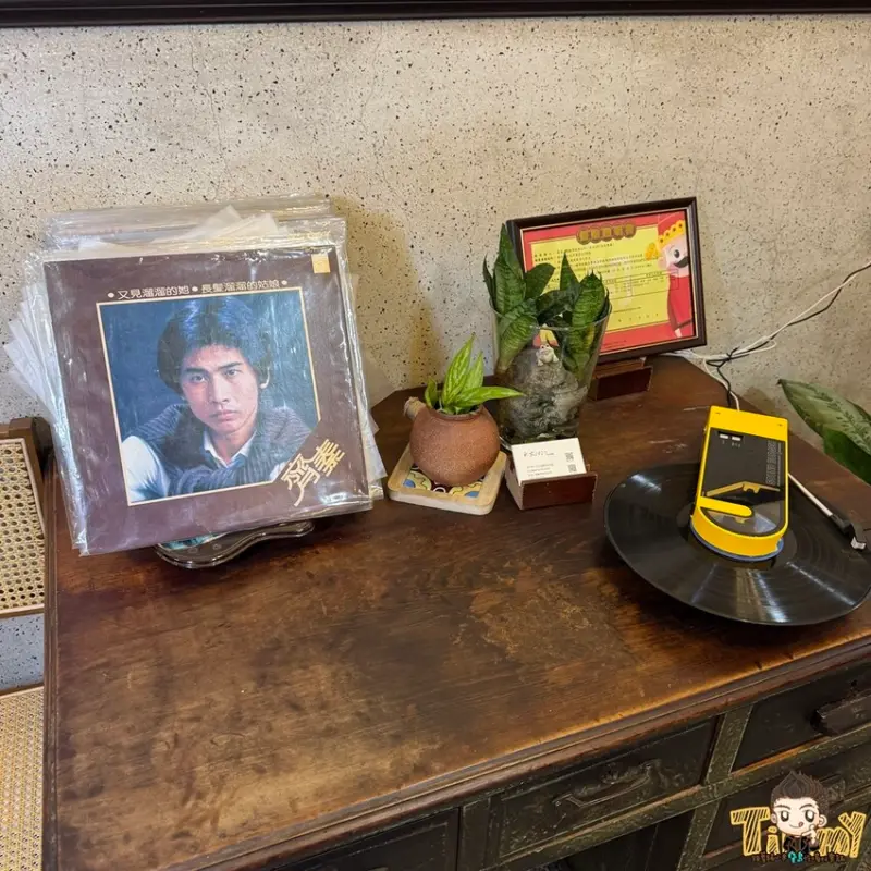 這裡有許多年代久遠的黑膠唱片,現在大家可以用現代的黑膠唱片機復刻舊時光