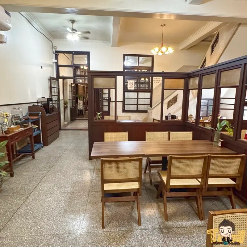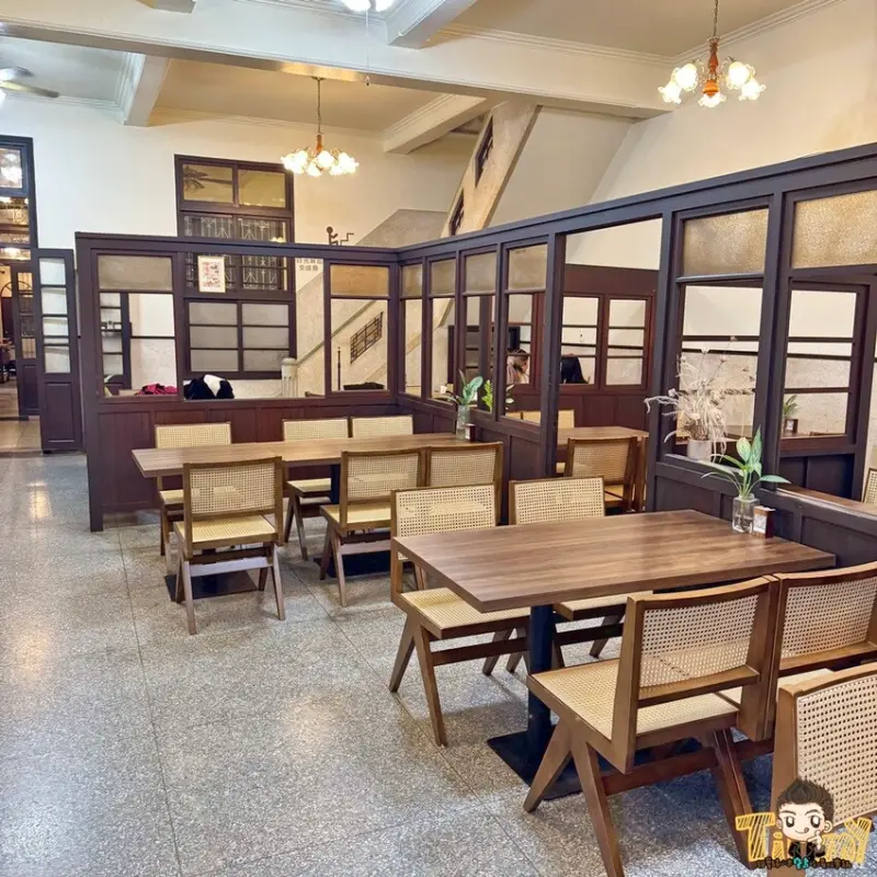 餐廳保留老屋原本的建築結構、巴洛克式天花板,加上木製桌椅,有種穿越回到過去的感受