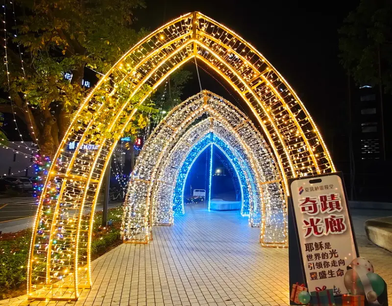 奇蹟光廊,也象徵耶穌的降生,為每一個人帶來生命的光!走過奇蹟光廊,彷彿每個人都能夠領受「生命豐盛」、「家庭幸福」、「職場卓越」等三大奇蹟好禮,代表著只要有耶穌,我們的生命都有無限的可能!奇蹟光廊吸睛奪目的視覺效果,也為每一位拍照的民眾留下最美好的聖誕回憶,讓今年夏凱納聖誕季更加繽紛耀眼!(夏凱納官網介紹)
