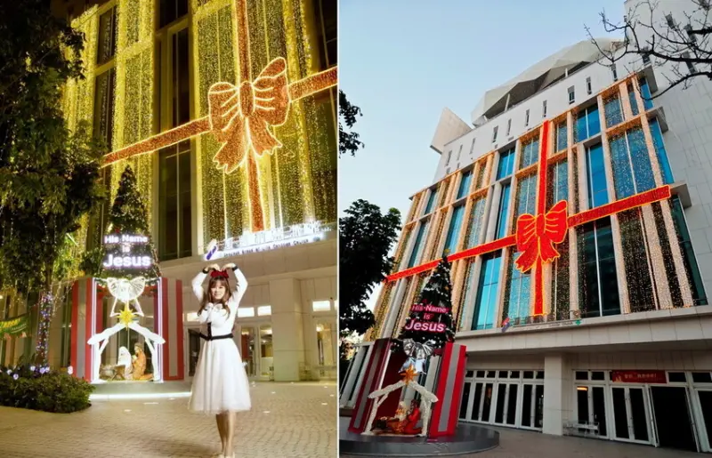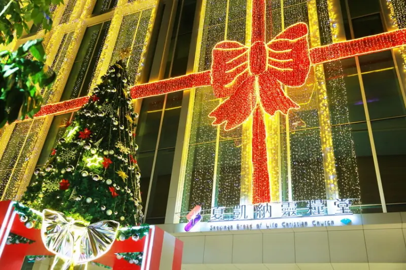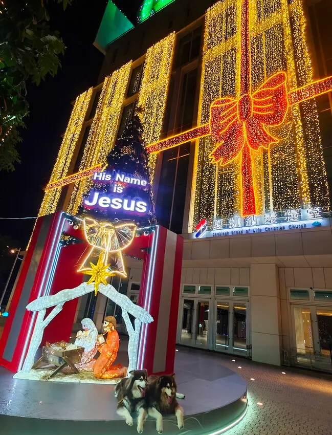 夏凱納靈糧堂,把教堂包裝成一個超大的聖誕禮物盒,7.5米高聖誕樹、奇蹟光廊、彩色光球……每個景點都好好拍、2024超夢幻聖誕打卡熱點就在夏凱納。