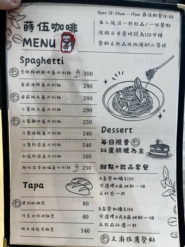店家的品項不多,主要就是飲料和義大利麵,還有一些麵包和甜點。目前10月份有開幕活動,只要在FB或IG打卡、留下評論,就能拿到一杯免費紅茶!第一次來我點了「香蒜鮮蝦雞肉義大利麵」,$300元,重點是完全不收服務費!