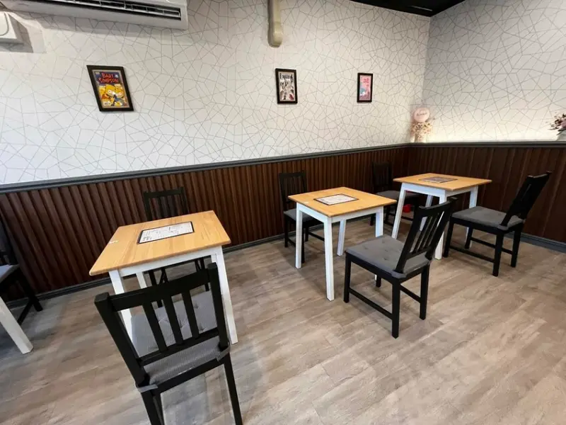 店內的裝潢以簡約為主,桌椅之間的距離不算太擠,兩人桌、四人桌都有,桌上還貼心地擺了一份菜單,感覺很舒適。