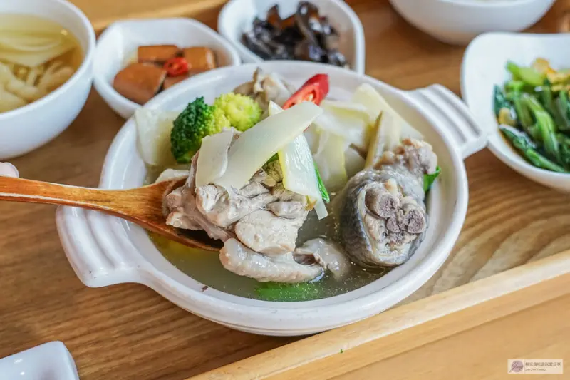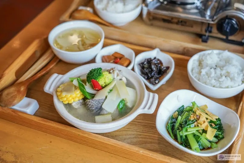 推薦他們的筍絲鮮魚鍋,份量剛剛好,還附上一盤新鮮蔬菜。使用的蔬果都是當地的原型食材,吃起來特別新鮮健康。