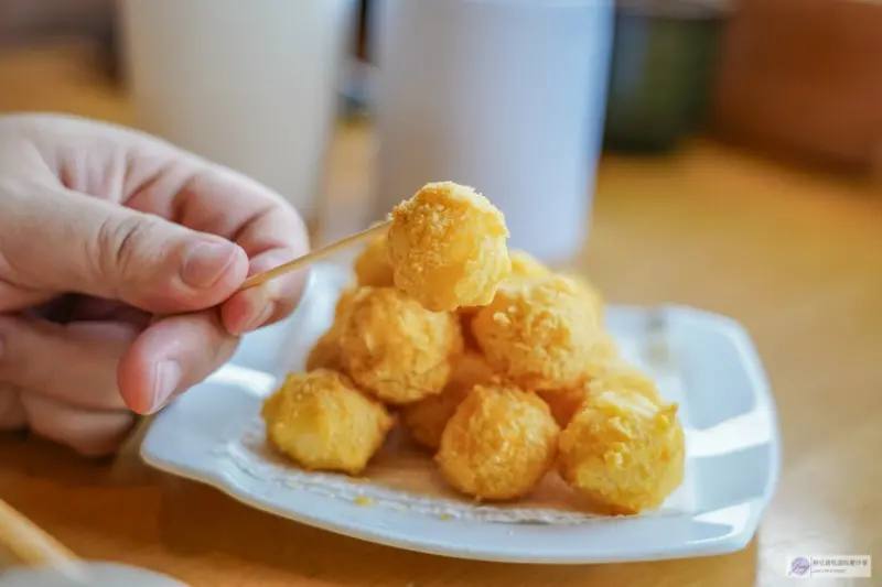 外皮是地瓜製作的,軟Q彈牙,內餡是濃郁的芋頭泥,口感紮實,外酥內軟不油膩,當作茶點小吃剛剛好。