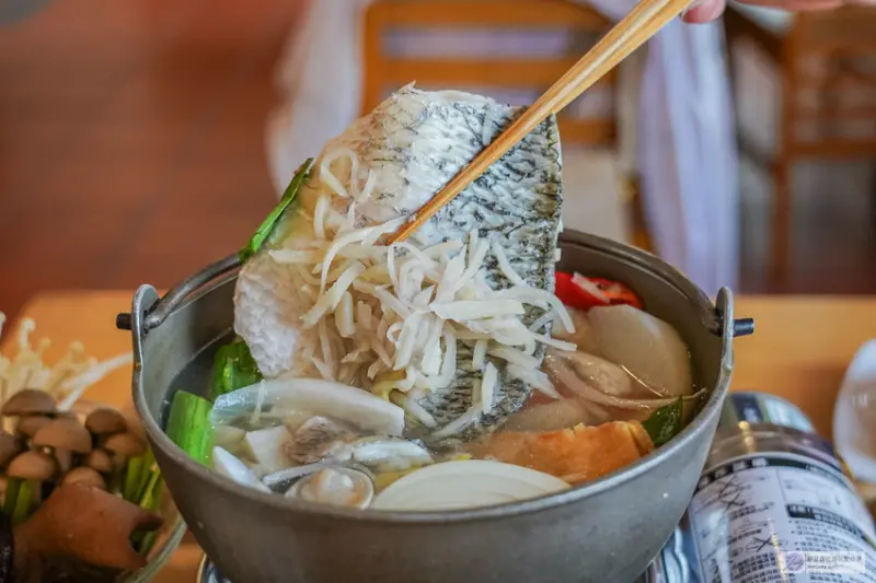 鮮魚鍋裡滿滿一片鱸魚,真的超有誠意!湯頭鮮甜無腥味,魚肉軟嫩到入口即化,搭配蛤蠣和當地的筍絲,整體口感清爽又美味,讓人忍不住一口接一口。