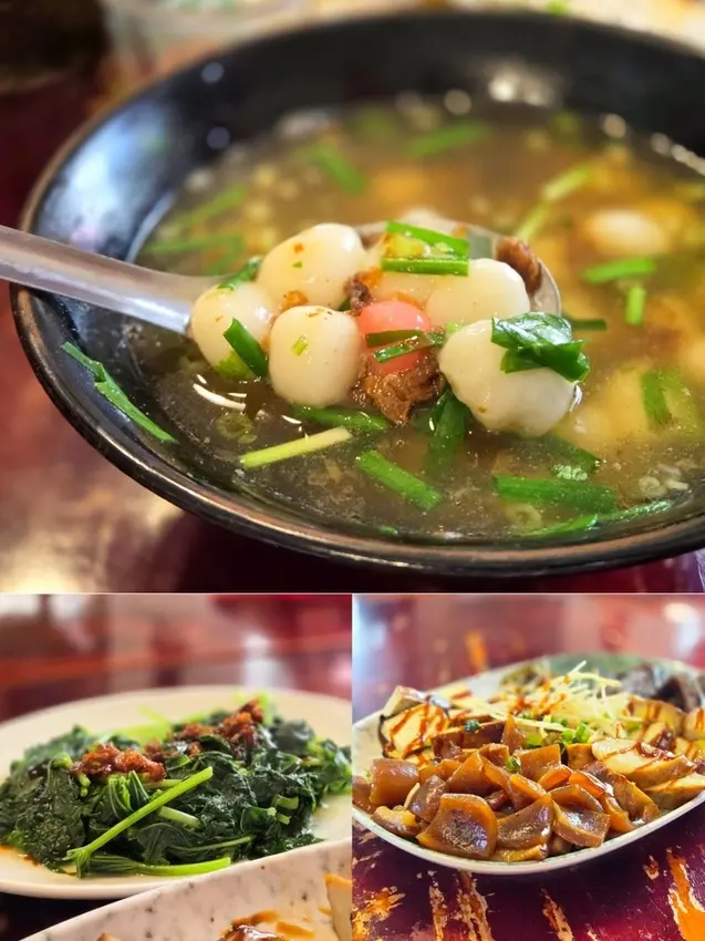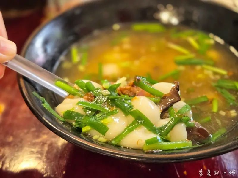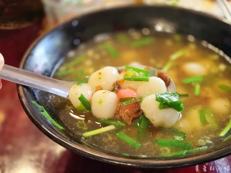 客家鹹湯圓的湯是用蝦米和香菇煸的好香還有一些辛香調味,加上韭菜增香氣,這碗好吃。