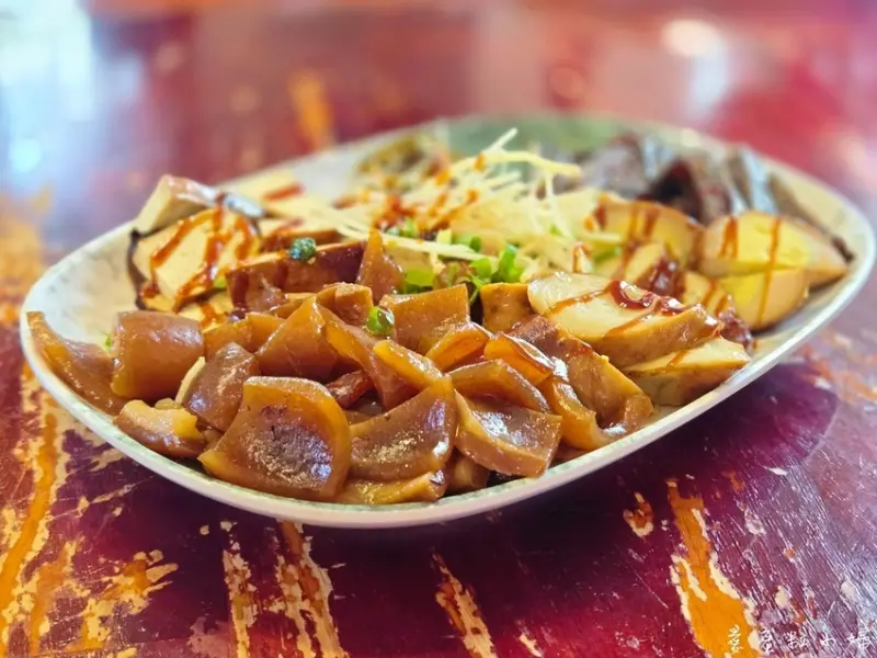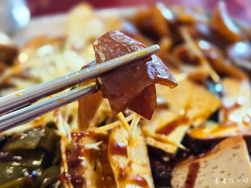 帶有滷肉香的豬皮,既軟又富有彈性,連兒子也賞臉一直夾豬皮。