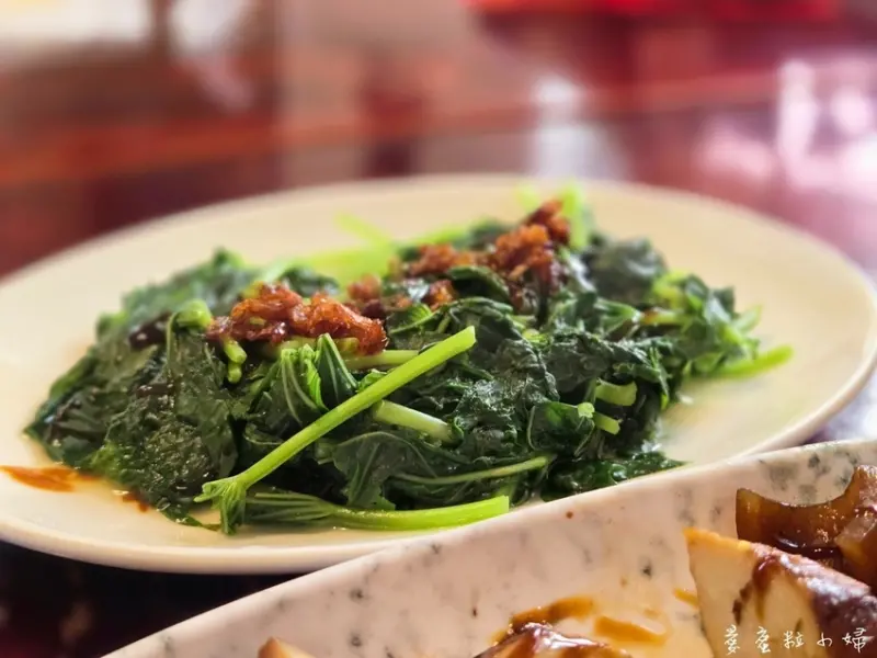 燙青菜挑地瓜葉,端上桌老闆說地瓜葉是自己種的,早上現採很新鮮,入口連梗的部位都是嫩的。
