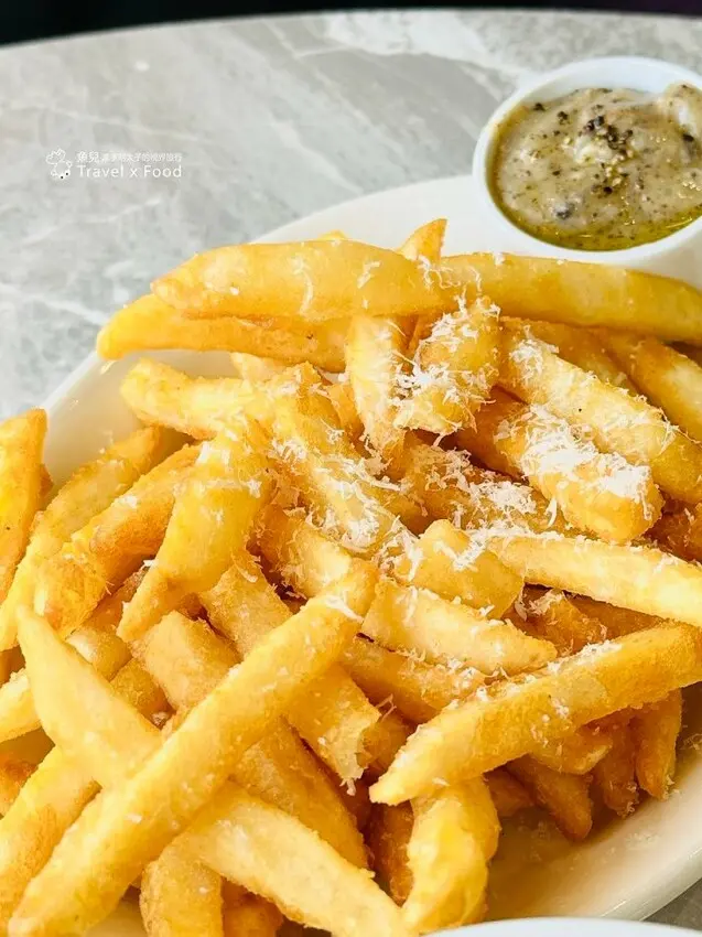 看著明細表上寫著”激推“二字,就知道這道薯條點對了!在沒有厚重裹粉的情況下,幾乎是原汁原味的呈現,特調的松露奶油可續乙次,在尚未續之前,薯條便己見底,尤其剛炸好那溫度,特別涮嘴啊!