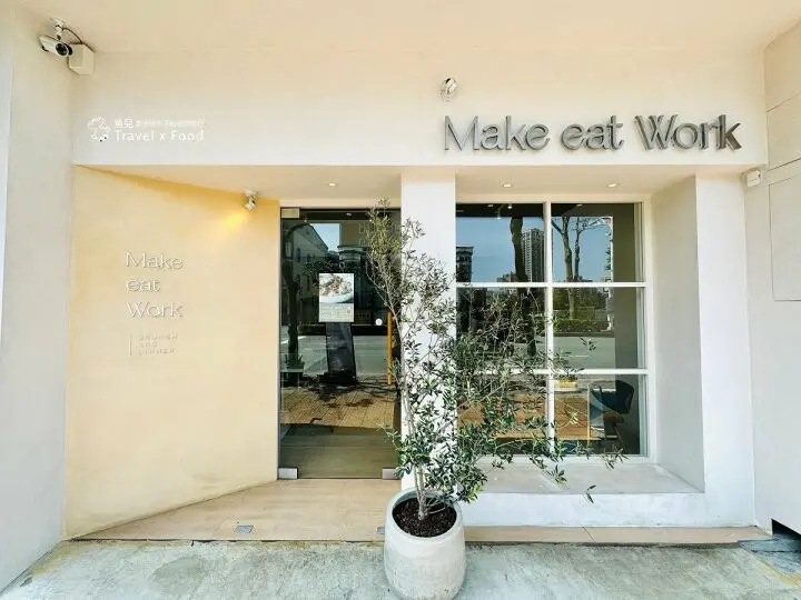Make Eat Work早方法鄰近交流道,地處車水馬龍的大馬路旁,店面不大,簡約純白的外觀讓人有些小確幸。