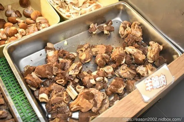 光是時蔬就多達10種以上可以選擇,招牌手撕羊肉、羊大骨、羊腳筋、羊腿肉、羊嫩筋,任你夾。