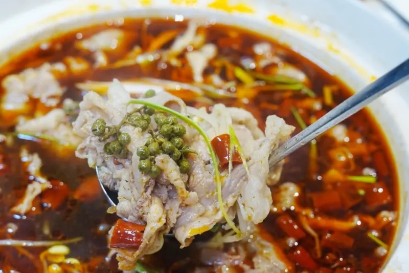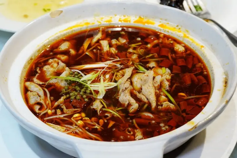 成都水煮牛肉口感滑嫩鮮香,看起來就超辣,喜歡吃辣的絕對不能錯過,是真的越吃越辣,但也越吃越過癮!