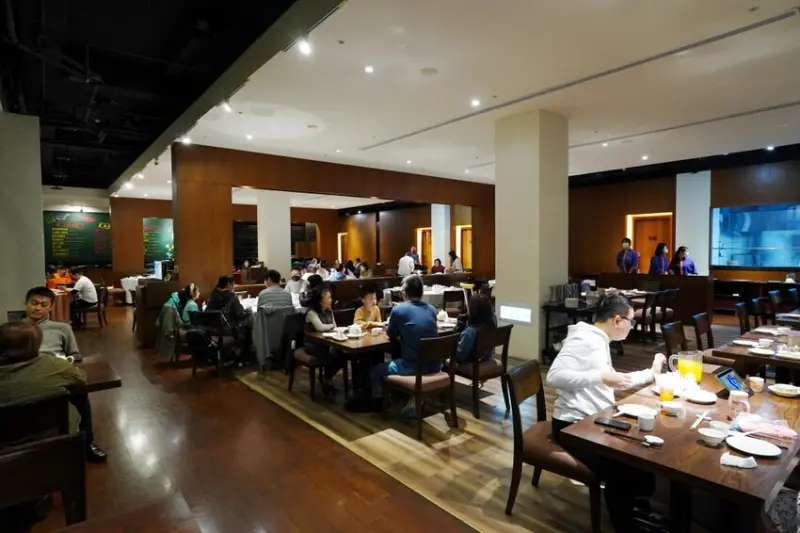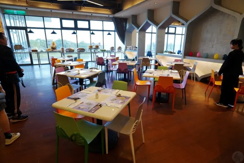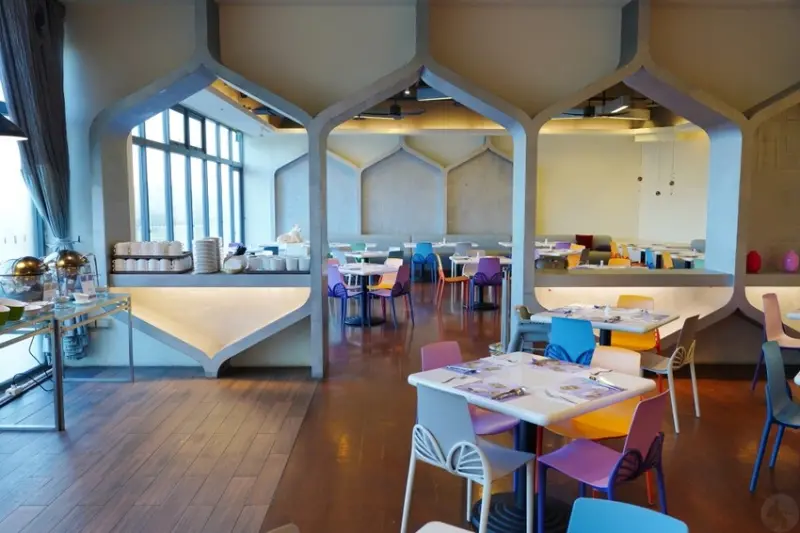 隔天早餐要先到一樓,再搭另一台電梯上去。用餐環境整體還不錯,空間蠻寬敞的,但桌子和桌子之間稍微靠得有點近。不過整體來說還是可以接受,吃得挺舒服的~