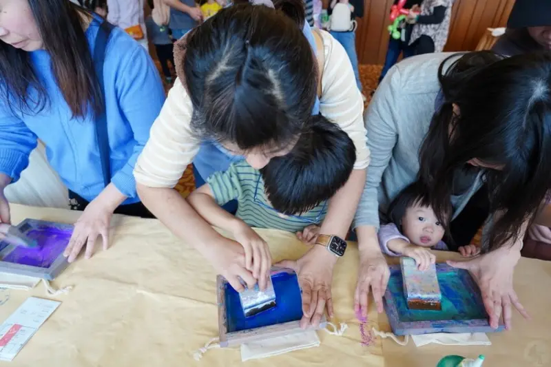 我們還參加了一個拓印DIY,本來以為看起來很簡單,結果一動手才發現其實沒那麼容易!過程還是挺有趣的,動手做的感覺讓人特別有成就感,小朋友也玩得超投入~雖然不簡單,但完成作品後真的超有滿足感!這是季節性活動,每年會做更換喔。