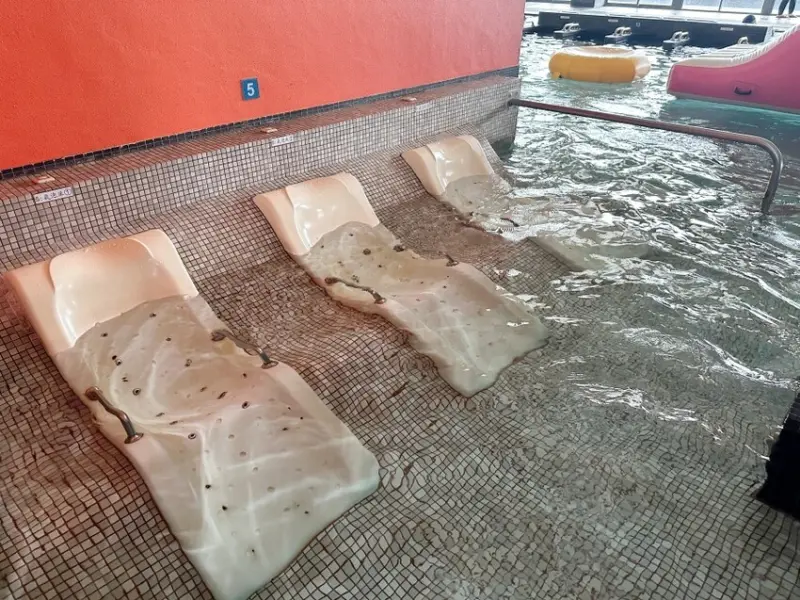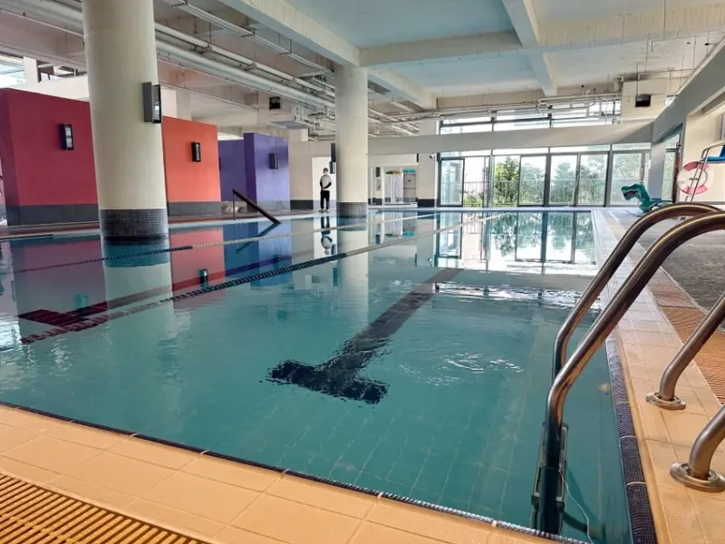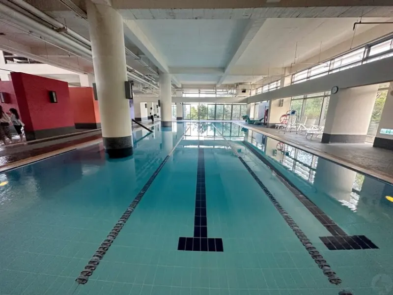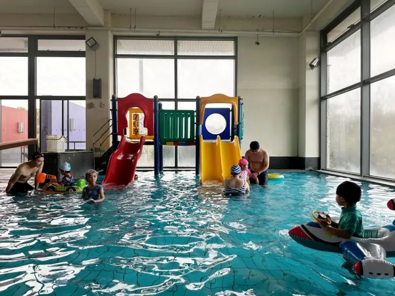 室內的溫水游泳池超大,游起來完全不擁擠!最棒的是不用擔心水會冷,因為是溫水設計,整個游起來又暖又舒服,特別適合放鬆身心~不管是大人還是小朋友都可以玩得很開心。