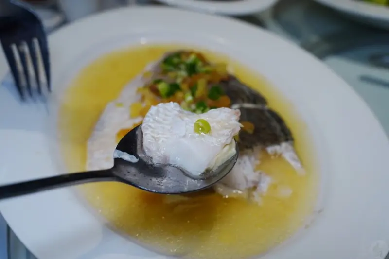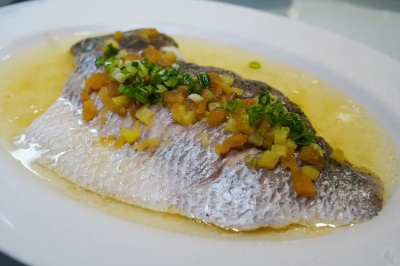 鳳梨米豆蒸鱸魚菲力,鱸魚肉質細嫩,搭配鳳梨的微酸清甜,口感清爽又多層次,鮮美可口!