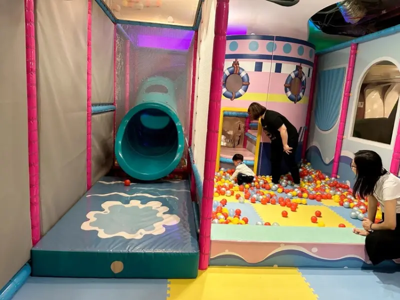 還有適合幼稚園和國小低年級的小朋友的複合式遊戲球池以及溜滑梯。