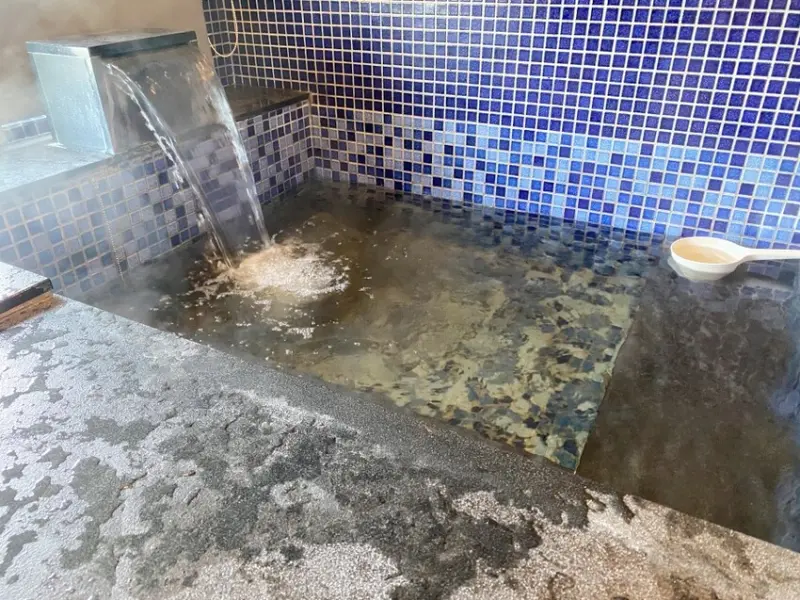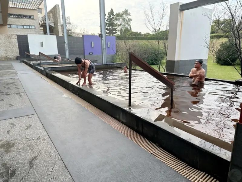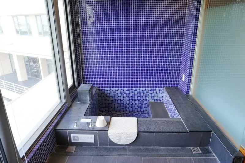 最棒的是,房間裡還有自己的泡湯池!如果覺得去飯店的裸湯區不太自在,那就在房間裡好好享受私密的泡湯時光吧~這裡的溫泉是碳酸氫鈉泉,也就是大家熟知的「美人湯」,泡完皮膚滑溜滑溜,真的超舒服,完全是身心靈的放鬆時刻!