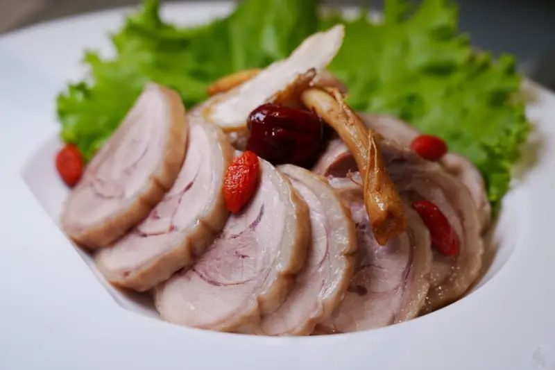 紹興醉雞肉質滑嫩,帶著濃郁的紹興酒香,入口微甜又帶點酒香的醇厚,清爽又回味無窮!