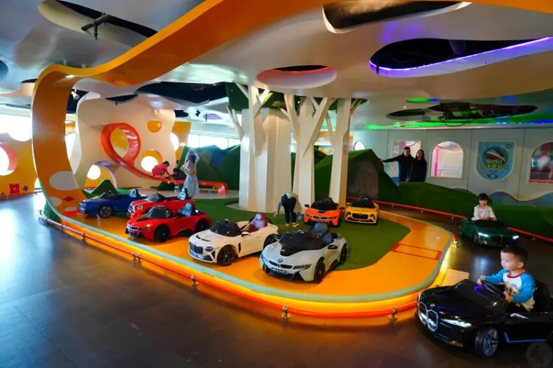除了兒童戲水池,最能讓小朋友嗨翻天的就是這個超熱門的Dino親子館啦!館內超豐富,小朋友最愛的情境車道場,還特別設計了草坪涵洞,讓孩子們開車過山洞,玩得超開心~