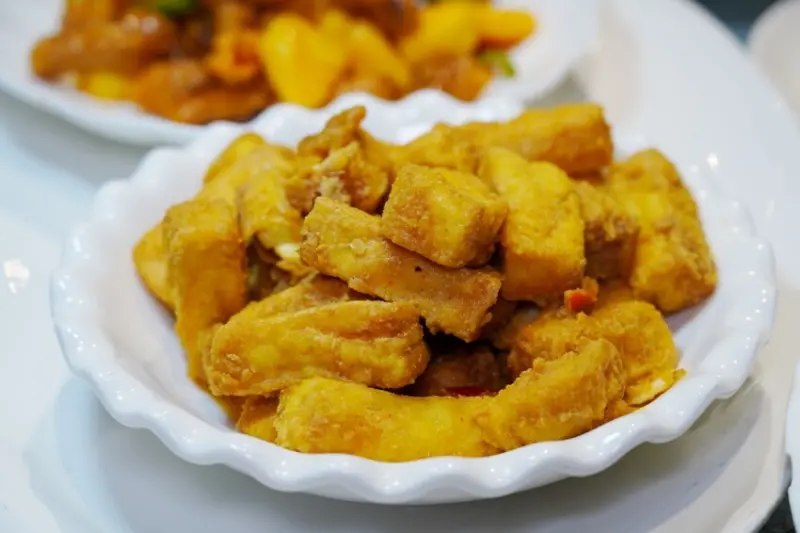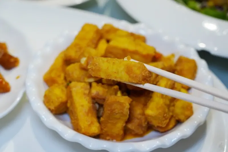 金沙豆腐外酥內嫩,鹹香濃郁,咬下去帶著濃厚的鹹蛋黃香氣,滑口又入味,這道很下飯!