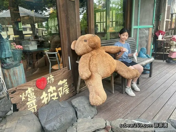 門口的椅子上還有隻大熊玩偶,坐著和他一起拍照也不錯