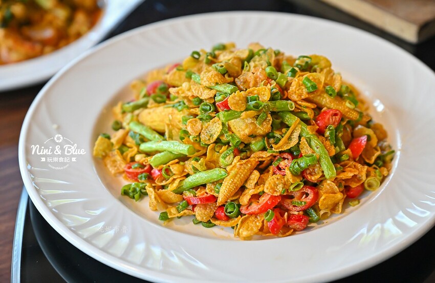 妮妮覺得這是一道很有趣的料理,濃郁鹹香的金沙醬完美包覆豆子與玉米筍,特別的是加上脆口玉米片,讓口感更加多變化,看似平凡的熱炒卻是相當好吃