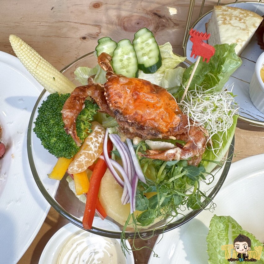 軟殼蟹肉質鮮嫩甜美,還有蟹膏喔,加上生菜沙拉適合2-4人分享。