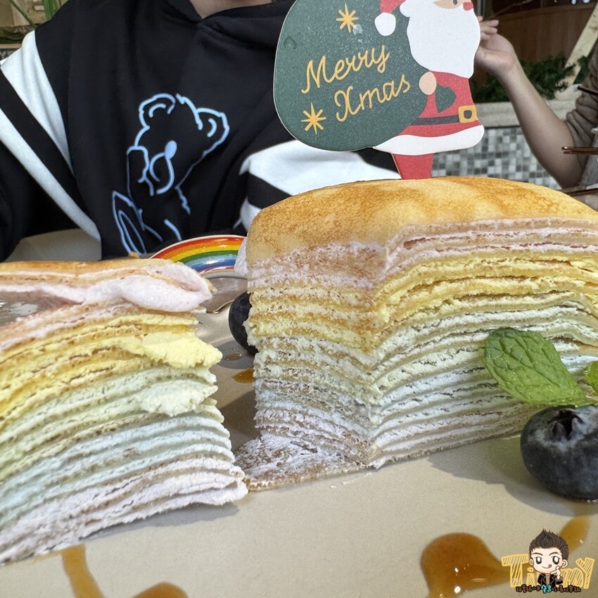 森林彩虹千層蛋糕(180元)很推薦,口感綿密濕潤,不會太甜,讓人一口接一口吃不停。