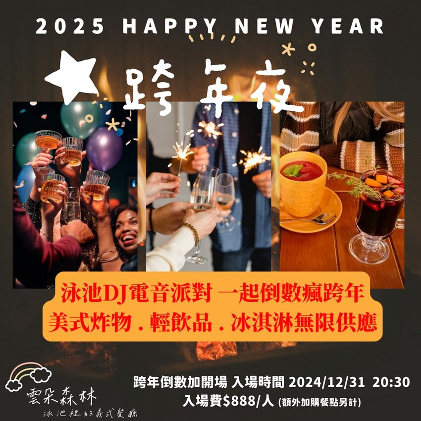 2024最後一天還要上班?不想跑101人擠人!! 沒關係~來雲朵的電音倒數派對,讓音浪替你充電!💃🕺超狂DJ泳池Party,保證跳到連手機都自動省電模式!🎶✨