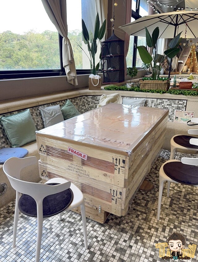 桌子以木棧板加工製成,搭配露營椅,就像在野外露營一樣,但不用在外風吹雨打,還可以邊享用美食邊拍照~