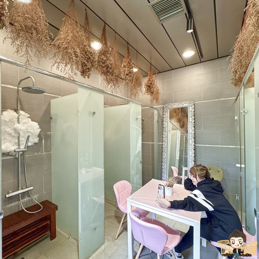 還可以在由淋浴間改造而成的座位拍照,想拍出有趣照片的朋友可以坐這裡體驗喔