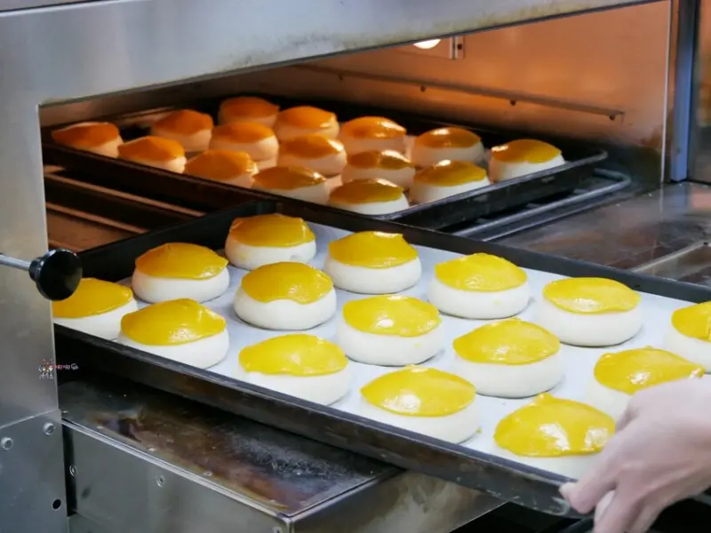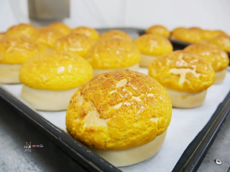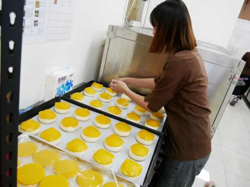 我們特別請店家讓我們拍攝一下烤菠蘿包的過程,基本上麵團、材料都是總店那邊送來的,加盟店負責的就是將半成品完成,讓客人可以吃到現烤新鮮的菠蘿包。