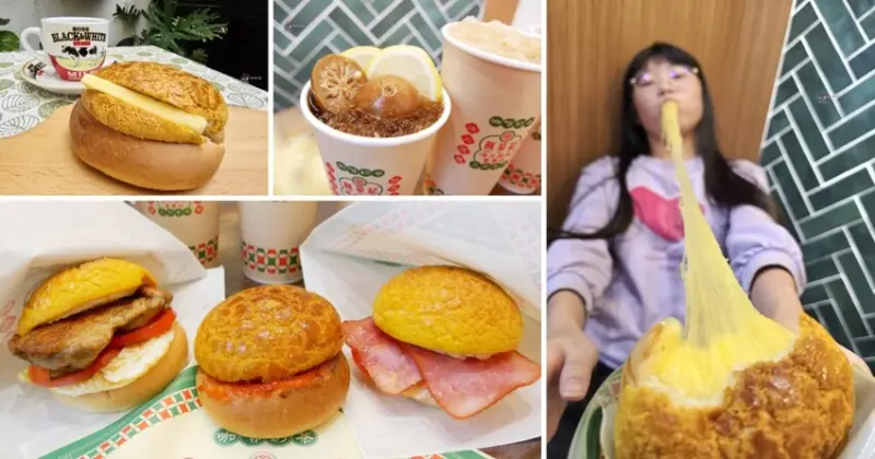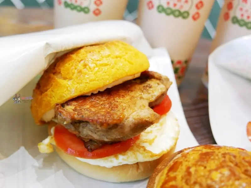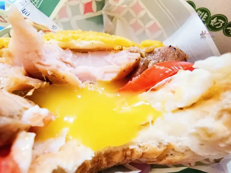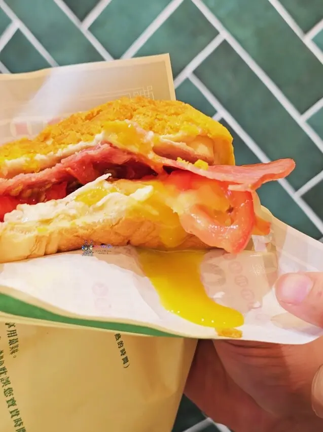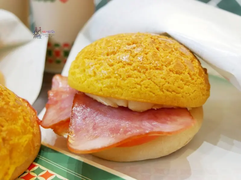 如果只是小餓又想來點鹹的話,可以點其他的煎蛋系列,例如雙火腿煎蛋菠蘿包,裡面一樣有爆漿的蛋液,兩片火腿又肉感十足,當點心我覺得剛剛好。