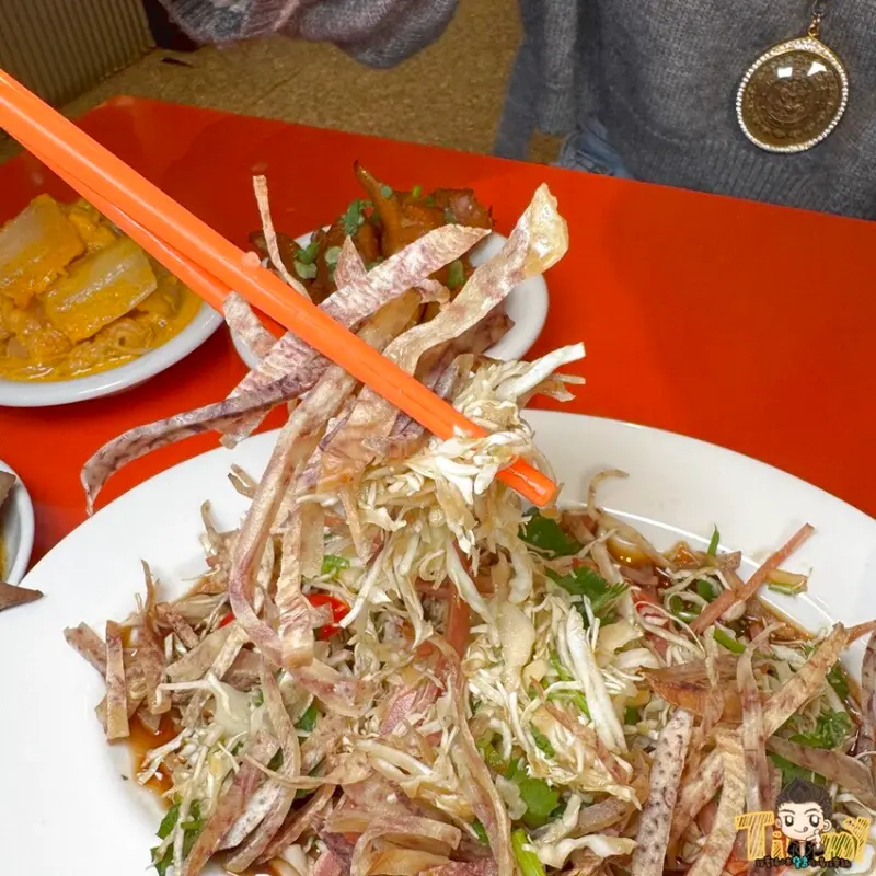麵條很像澳門的緬甸撈麵,有Q彈的口感,搭配鹹甜的醬汁很開胃,讓人一口接一口吃不停。