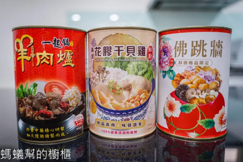欣欣生技食品 | 雲林斗六免費參觀軍用罐頭工廠「欣欣生技食品」推出年菜三冠王組合!「羊肉爐/黃金花膠干貝雞/佛跳牆」三種人氣組合享早鳥優惠價格,不占冰箱空間、免冷藏,易開罐隨開隨時加熱就能享用大菜!省去買菜跟烹飪步驟,0廚藝也能輕鬆端上好菜。