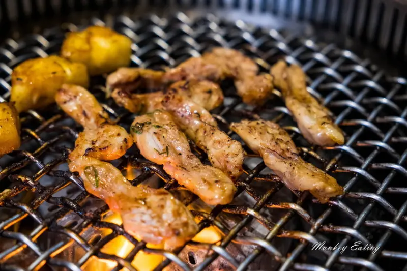 壺漬雞松阪選用雞脖子周圍的肉,帶點類似雞軟骨脆脆的口感,烤過之後很好吃,搭配酸酸甜甜的鳳梨整體吃起來格外清爽,吃多也不覺得膩。