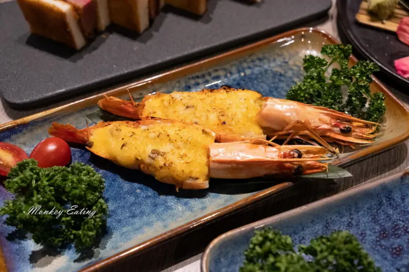 新鮮大蝦去掉腸泥之後,在蝦肉上加入了酪梨果肉以及起司下去焗烤,味道上很有層次,也保留了蝦肉彈牙鮮甜感,推薦可以點這一道唷~